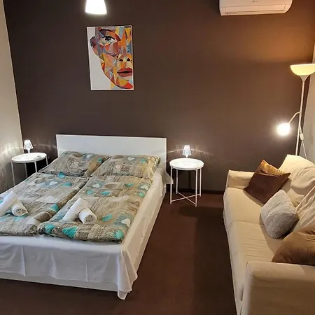 El establecimiento está equipado con una cocina con un horno de microondas, una cafetera/tetera y una nevera. Los huéspedes que se alojen en este apartamento podrán disfrutar de la comodidad de tener a su disposición servicio de tetera/cafetera. El aeropuerto Hévíz-Balaton se encuentra a 90 km, mientras que la estación de autobuses Muzsinszki Nagy Endre utca está junto a la propiedad.